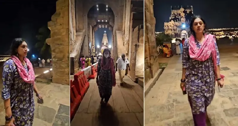 തമിഴ്നാട്ടിലെ തഞ്ചാവൂരിന്റെ ഹൃദയഭാഗത്താണ് ബൃഹദീശ്വര ക്ഷേത്രം സ്ഥിതി ചെയ്യുന്നത് . കലയുടെയും, സംസ്ക്കാരിക , പാരമ്പര്യങ്ങളുടെയും സമന്വയമായ ഈ ക്ഷേത്രം ഭാരതത്തിന്റെ അഭിമാനമാണ് . ക്ഷേത്രത്തിൽ ദർശനം നടത്താനെത്തിയ നടി ശോഭനയുടെ ദൃശ്യങ്ങളാണ് ഇപ്പോൾ വൈറലാകുന്നത് .ബൃഹദീശ്വര ക്ഷേത്രത്തിൽ താരം സന്ദർശനം നടത്തുന്ന ദൃശ്യം താരം തന്നെയാണ് സമൂഹ മാധ്യമങ്ങളിൽ പങ്കുവച്ചത്