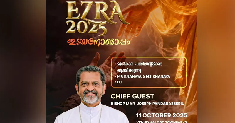 ഡബ്ലിൻ: എസ്ര 2025 നായി ക്നാനായ കത്തോലിക്കാ സഭാ സഹായ മെത്രാൻ മാർ ജോസഫ് പണ്ടാരശ്ശേരി ഡബ്ലിനിൽ. ഇന്നലെ ( വ്യാഴാഴ്ച) വൈകീട്ട് ഡബ്ലിൻ വിമാനത്താവളത്തിൽ എത്തിയ അദ്ദേഹത്തിന് വിശ്വാസികൾ ഉജ്ജ്വല സ്വീകരണം നൽകി. തുടർന്ന് മാർ ജോസഫ് പണ്ടാശ്ശേരിയുടെ സാന്നിധ്യത്തിൽ താലയിൽ കെസിഎഐ പ്രതിനിധി സമ്മേളനവും അത്താഴ വിരുന്നും നടന്നു.