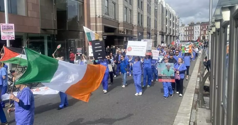 ഡബ്ലിൻ: ഗാസയ്ക്കായി ഡബ്ലിൻ നഗരത്തിൽ അണിചേർന്ന് ആരോഗ്യപ്രവർത്തകർ. ഇന്നലെ നഗരത്തിൽ സംഘടിപ്പിച്ച പ്രതിഷേധ പ്രകടനത്തിൽ ഡോക്ടർമാരും മറ്റ് ആരോഗ്യപ്രവർത്തകരും ഉൾപ്പെടെ രണ്ടായിരത്തോളം പേരാണ് പങ്കെടുത്തത്. ഇസ്രായേലിന്റെ ആക്രമണത്തെ തുടർന്ന് രാപ്പകലില്ലാതെ ജോലി നോക്കേണ്ട അവസ്ഥയിലാണ് ഗാസയിലെ ആരോഗ്യപ്രവർത്തകരെന്ന് പ്രതിഷേധക്കാർ വ്യക്തമാക്കി.