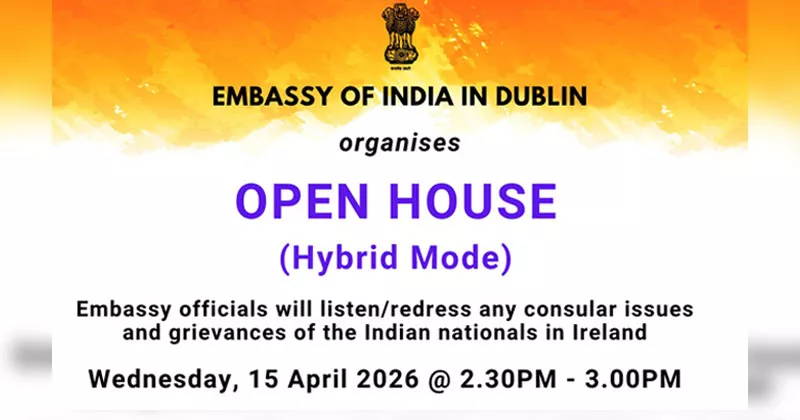 ഡബ്ലിൻ: പരാതി പരിഹാരത്തിനായി ‘ ഓപ്പൺ ഹൗസ് ‘ എന്ന പേരിൽ പരിപാടി സംഘടിപ്പിക്കാൻ ഡബ്ലിനിലെ ഇന്ത്യൻ എംഎബസി. ഈ മാസം 15 ന് ആണ് പരിപാടി. അയർലൻഡിൽ താമസിക്കുന്ന ഇന്ത്യക്കാർക്ക് തങ്ങളുടെ പ്രശ്നങ്ങൾ അവതരിപ്പിക്കാം.