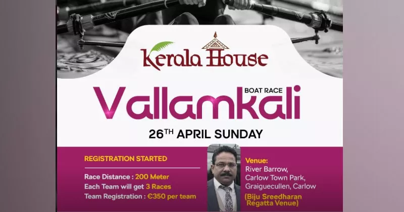കാർലോ: അയർലൻഡിനെ ആവേശത്തിരയിലാഴ്ത്താൻ കേരള ഹൗസ് ബോട്ട് റേസ് ഇക്കുറിയും എത്തുന്നു. അടുത്ത മാസം 26 ഞായറാഴ്ചയാണ് മത്സരങ്ങൾ. കേരള ഹൗസ് വള്ളം കളിയുടെ നാലാമത് സീസണാണ് അടുത്ത മാസം നടക്കുന്നത്.