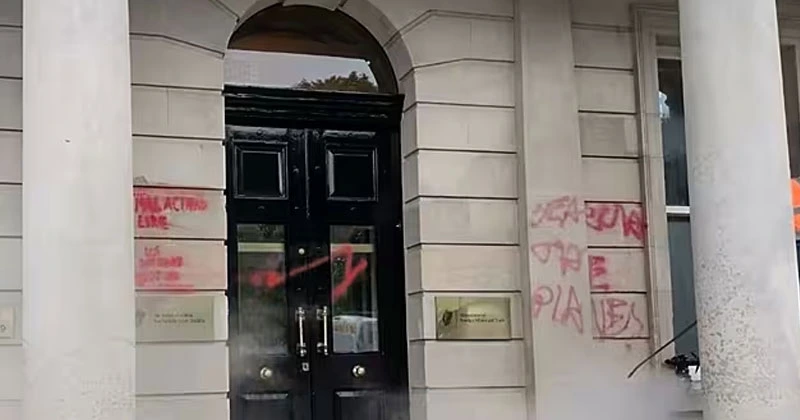 ഡബ്ലിൻ: അയർലന്റിലെ വിദേശകാര്യ വകുപ്പിന്റെ ആസ്ഥാനത്ത് ഗ്രാഫിറ്റി വരച്ച് പലസ്തീൻ അനുകൂല ഗ്രൂപ്പ്. സംഭവത്തിൽ പോലീസ് അന്വേഷണം ആരംഭിച്ചു. ഡബ്ലിനിലെ സെന്റ് സ്റ്റീഫൻസ് ഗ്രീനിലെ ഇവാഗ് ഹൗസിന്റെ എൻട്രൻസിലാണ് ഗ്രാഫിറ്റി പ്രത്യക്ഷപ്പെട്ടത്.