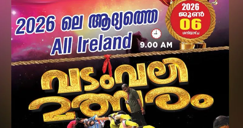 ന്യൂകാസ്റ്റിൽ വെസ്റ്റ് ഇന്ത്യൻ കൾച്ചറൽ അസോസിയേഷന്റെ നേതൃത്വത്തിലാണ് അയർലൻഡിൽ വടംവലി മാമാങ്കം നടക്കുന്നത്. മത്സരത്തിൽ അയർലൻഡിലെ നിരവധി ടീമുകൾ പങ്കെടുക്കും. ഒന്നാം സ്ഥാനം കരസ്ഥമാക്കുന്നവർക്ക് ആയിരം യൂറോയാണ് സമ്മാനമായി ലഭിക്കുക. 750 യൂറോ രണ്ടാം സമ്മാനമായും 500 യൂറോ മൂന്നാം സമ്മാനമായും നൽകും. 250 യൂറോയാണ് നാലാമത് എത്തുന്ന ടീമിന് ലഭിക്കുക.