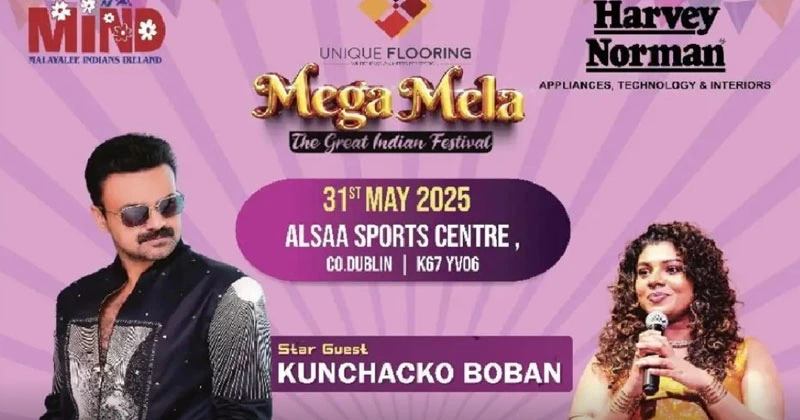 ഡബ്ലിൻ: മൈൻഡിന്റെ ( മലയാളി ഇന്ത്യൻസ് അയർലന്റ് ) മൈൻഡ് മെഗാ മേള ഈ മാസം അവസാനം. മെയ് 31 ന് നടക്കുന്ന പരിപാടിയിൽ മലയാളത്തിന്റെ പ്രിയപ്പെട്ട നടൻ കുഞ്ചാക്കോ ബോബൻ മുഖ്യതിഥിയായി എത്തും. ഡബ്ലിനിലെ അൽസാ സ്പോർട് സെന്ററിലാണ് പരിപാടികൾ നടക്കുന്നത്.
